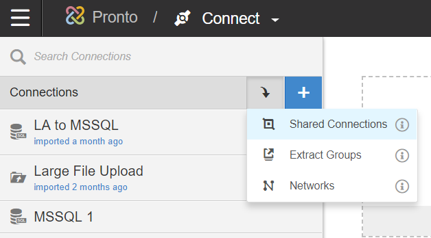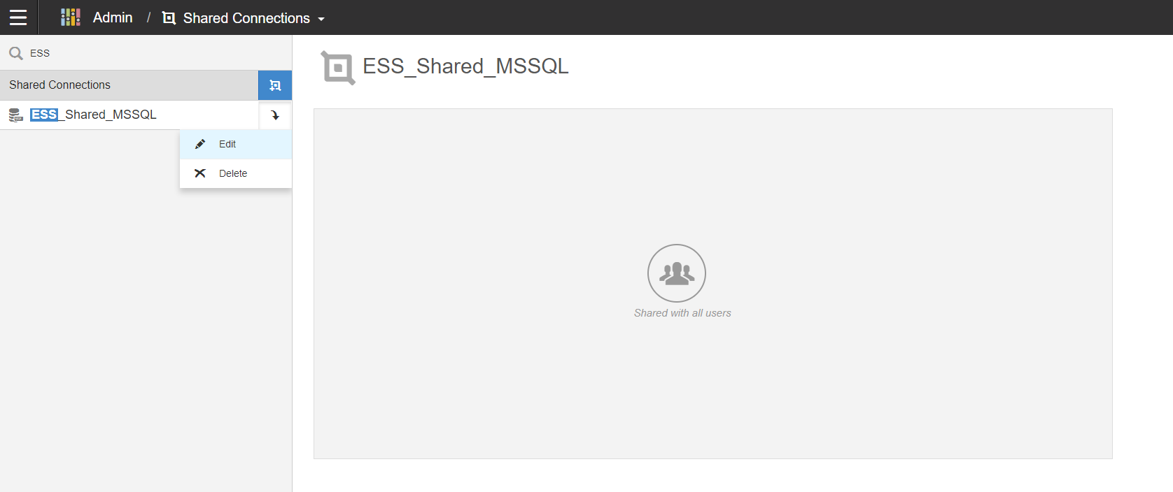 The set up for a Shared Connection is the same as creating your own Data Connection. After you configure and save your saved connection, your shared connections are shared with all users within the account. You have the option to edit or delete the connection.