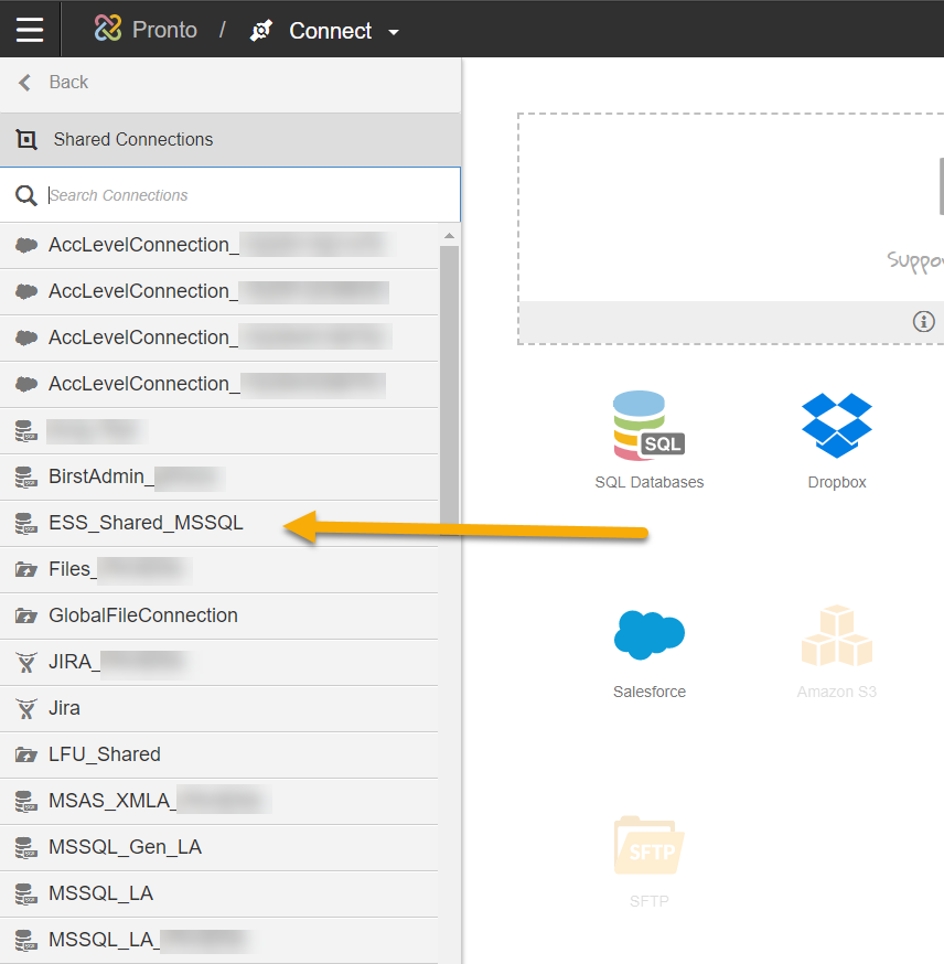 You can then select a shared connection created by your admin from the Modeler Connect page.