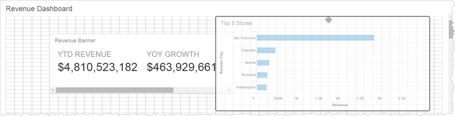 - You can layer dashlets on top of each other. For example, you can layer a KPI with a transparent background over an image. Drag a dashlet over another dashlet to activate the layering toolbar and use it to position the layers.