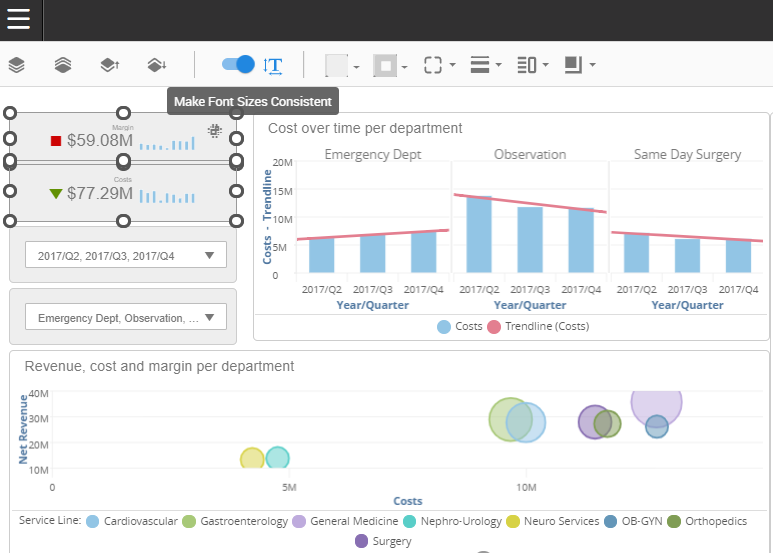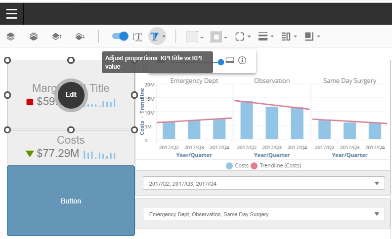 The KPI style options become available when you select one or more KPI. To select multiple KPIs, hold the Ctrl (PC) or Command (Mac) key and select the KPIs.
