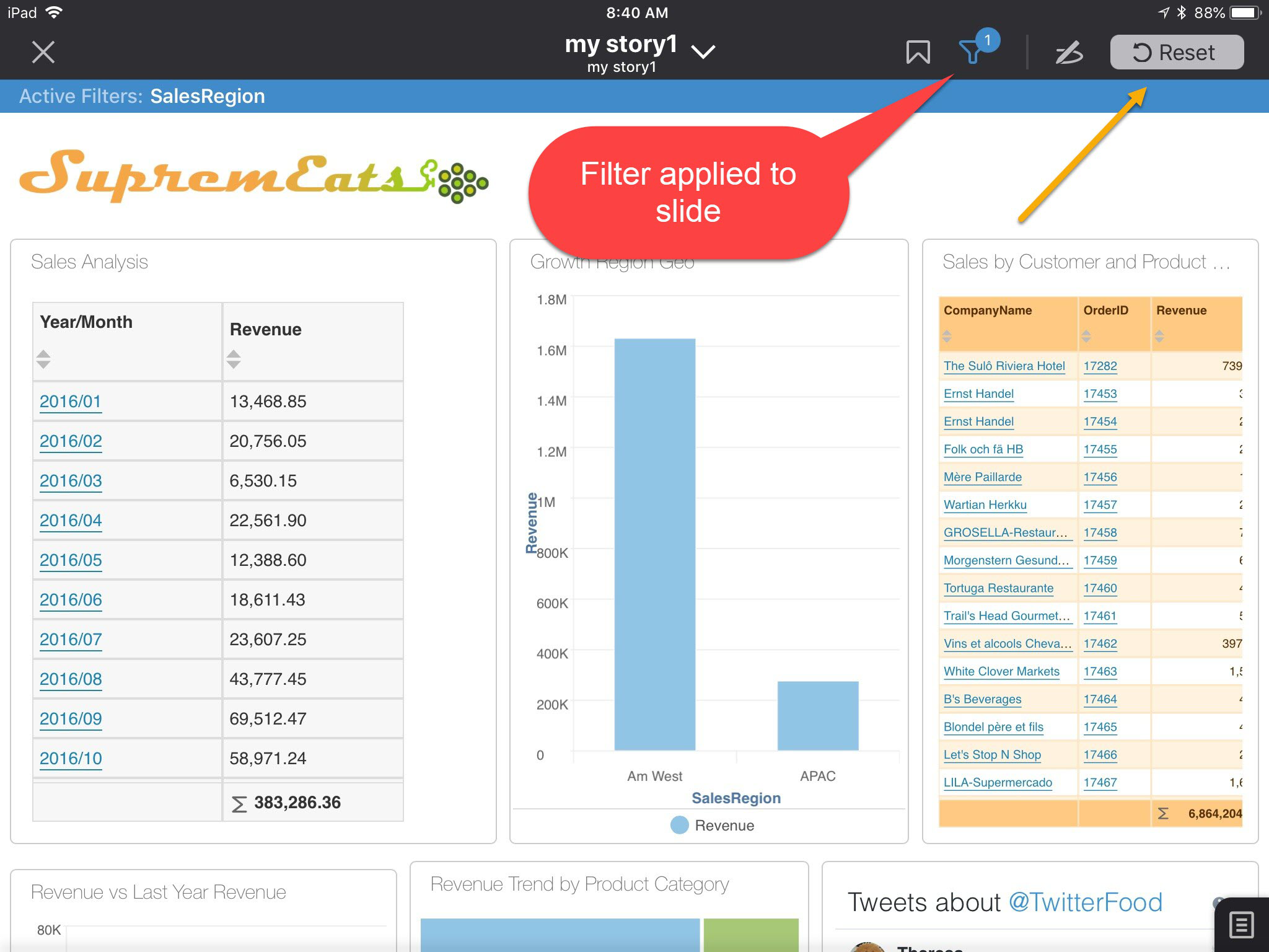 - After a slide has been changed, tap Reset to go back to the original slide state.