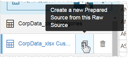 Verify the title turns blue to indicate that it is selected. - Rest your cursor to the right of the item in the list to see, and then click Create a New Prepared Source.