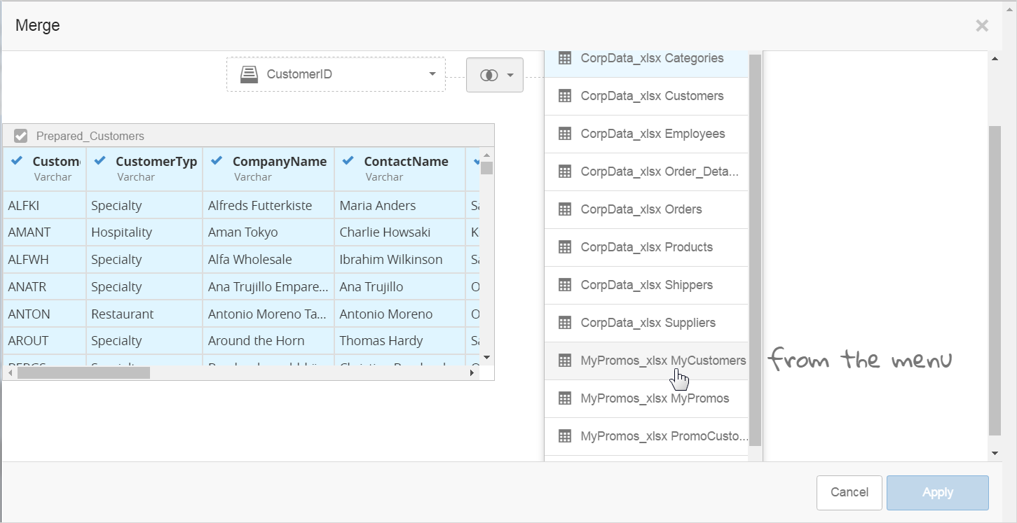 - Select the MyPromos_xlsx MyCustomers table. You may have to scroll to see it.