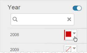 Select color overrides. For example, select colors and set conditions for a range of Gross Sales: You can set the conditions for the color gradients as either a number or percentage. As another example, these are conditions when using a time dimension:
