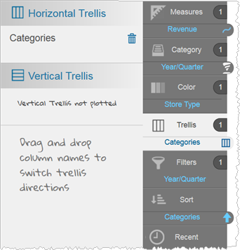 You can create trellis charts in Visualizer using Trellis in the Chart Builder. Use trellis charts to identify patterns and trends across a series of charts.