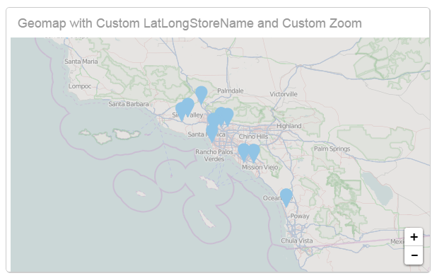 For example, you can save a map of Greater Los Angeles based on a built-in map. In a dashboard, you can zoom out to see the West and beyond.