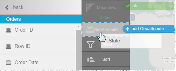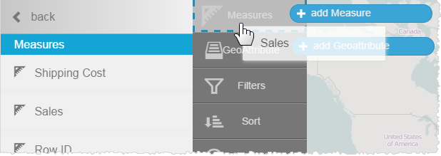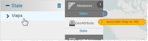 - From the Guided Mode menu select . The default map displays and Visualizer prompts you to add a measure and a geoattribute.