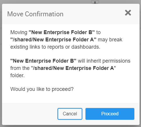 Moving an object will change that object's filepath. This may break existing links to reports or dashboards.