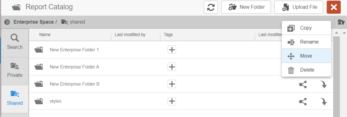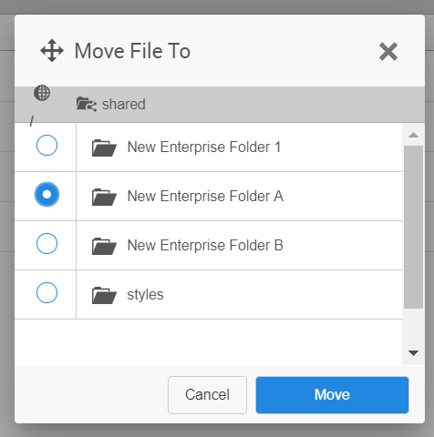 Note: You cannot move the top-level folders private/<user@domain> or Shared. These are reserved folders that cannot be modified or moved.