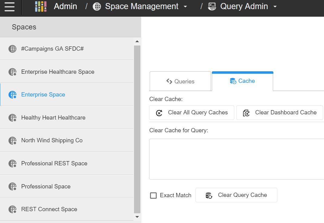 Space Administrators can test the SQL generation, query navigation plan, and query results of BQL queries from Query Admin.