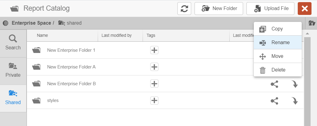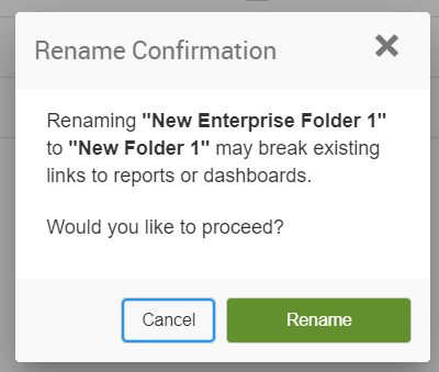 Note: Birst does not support multiple objects with the same name in different character cases. For example, users cannot have "Test Folder" and "TEST Folder" object names. The report name must be unique within a folder regardless of character case.