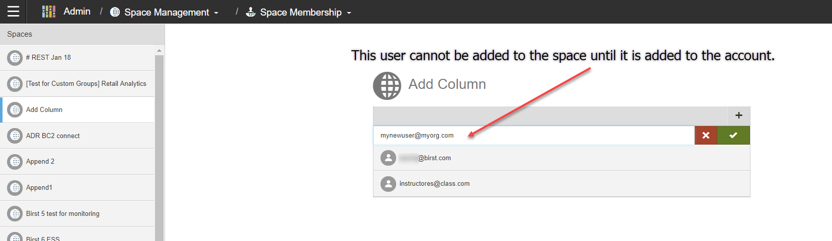 If the user you want to add to a Space group is already a member of that space, you can add the user to that group on the Space Groups page. If the user is not available in Space Groups, they need to be added in Space Membership.