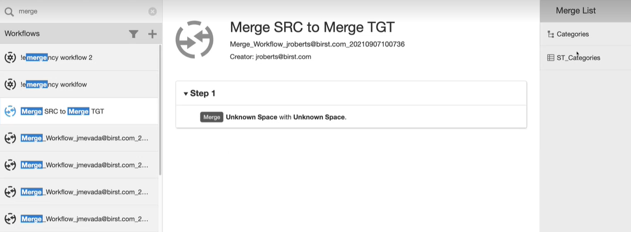 Note: For non-merge workflows, the Merge List panel does not display.