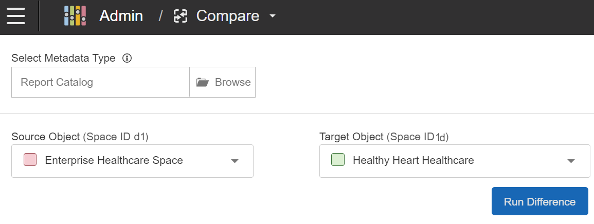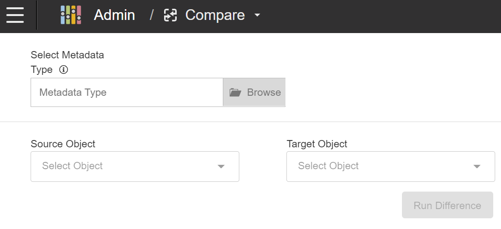 When your metadata type, source, and target objects are chosen, click Run Difference.