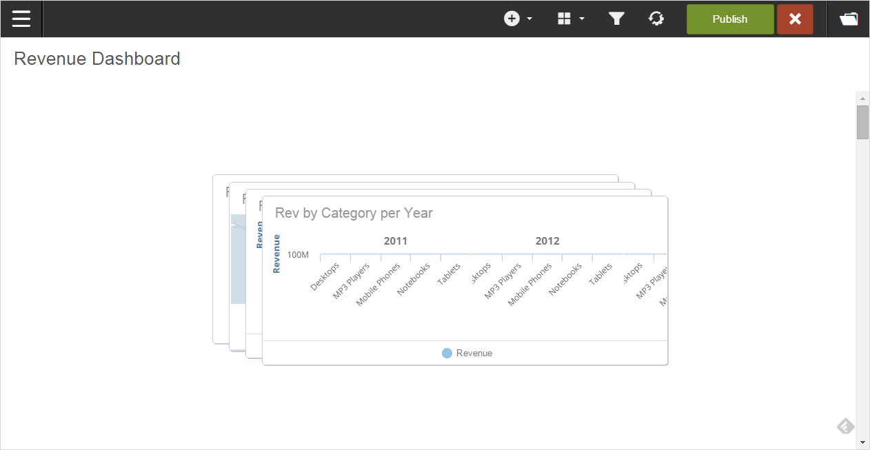 Dashboards stacks the reports on the dashboard for you to organize them.
