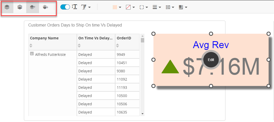 - The dashboard style editor also provides options to stack dashlets relative to each other.