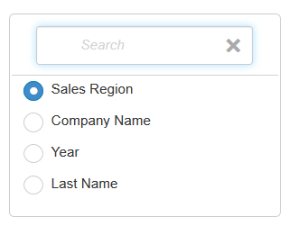 If you have a long list of filter selections in an Embedded Filter, you can use the Search field to find the desired filter value.