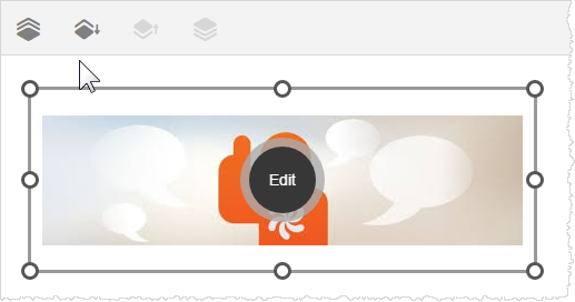 - You can layer dashlets on top of each other. For example, you can layer a KPI with a transparent background over an image. Drag a dashlet over another dashlet to activate the layering toolbar and use it to position the layers.