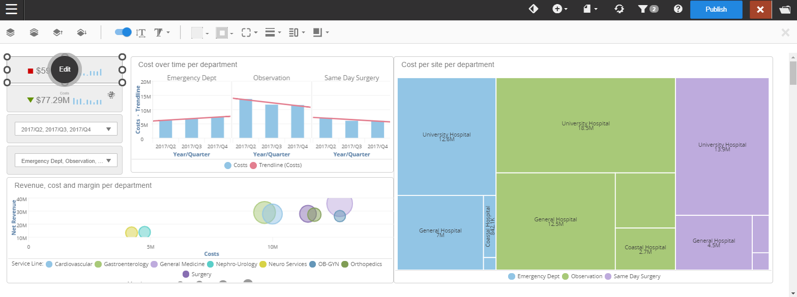 The KPI style options become available when you select one or more KPI. To select multiple KPIs, hold the Ctrl (PC) or Command (Mac) key and select the KPIs.