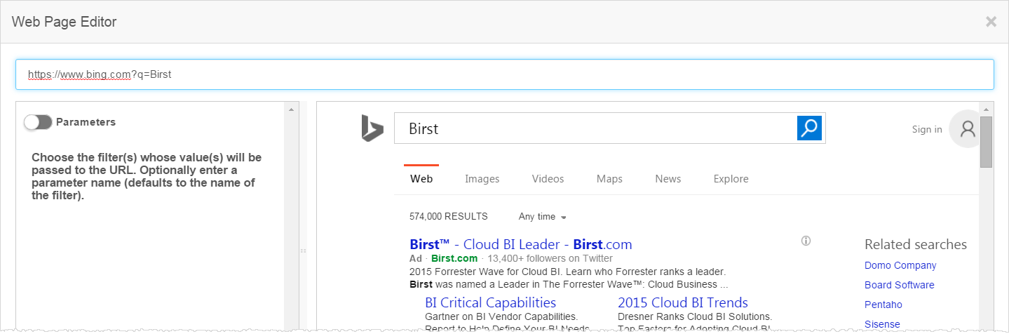 Dashboards can also include external web pages, and embedded HTML and JavaScript. For example you can call out to a public web page and display it on a dashboard.