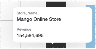 Tooltips provide specific information, such as the name and value, for a column or point in a chart. Some tooltips can include additional information or a navigational button.