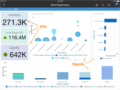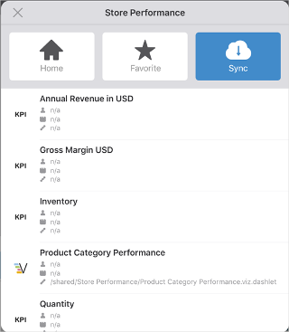 Note: To see a list of all KPIs and reports on a dashboard, tap its button.