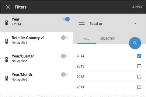Tap . The dashboard is updated to the subset of data set by the filter.