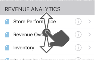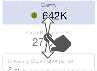 On a dashboard, scrolling vertically to browse KPIs and reports.