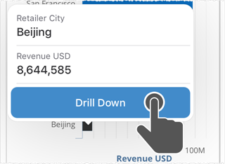 Tap on a column to see its tooltip and drill down button, if any.