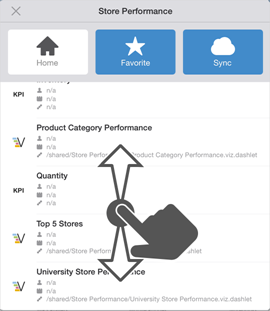 On iOS, the Dashboard Info screen lists the reports and KPIs that are on the dashboard. Scroll to see more.