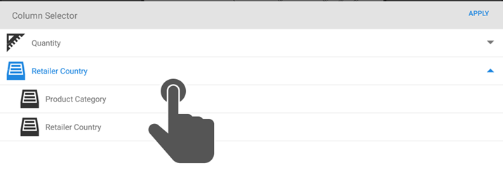 Tap the expand and collapse icons to show the available options. Tap to select another column.