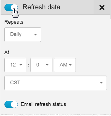 - When are people most likely to view the reports and dashboards? You may want to do a refresh prior to the start of the business day.