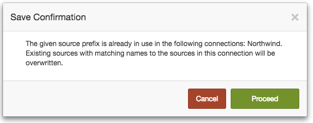 From the Create Connection panel in Birst Connect 2.0, you can now customize the source prefix by accessing the More Options panel. Enable the Do not use prefix option to remove the connection name as the prefix.