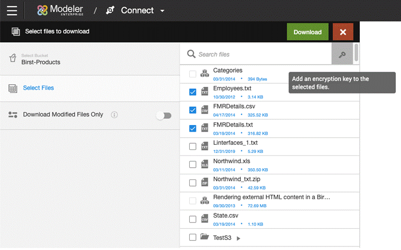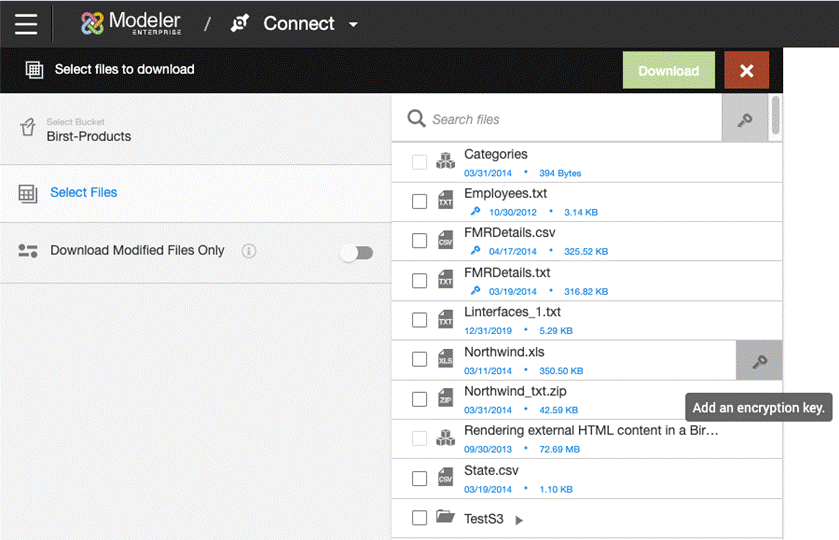 If the files are encrypted using a custom S3 encryption key, you can add the encryption key to the files. To add an encryption key for multiple files: