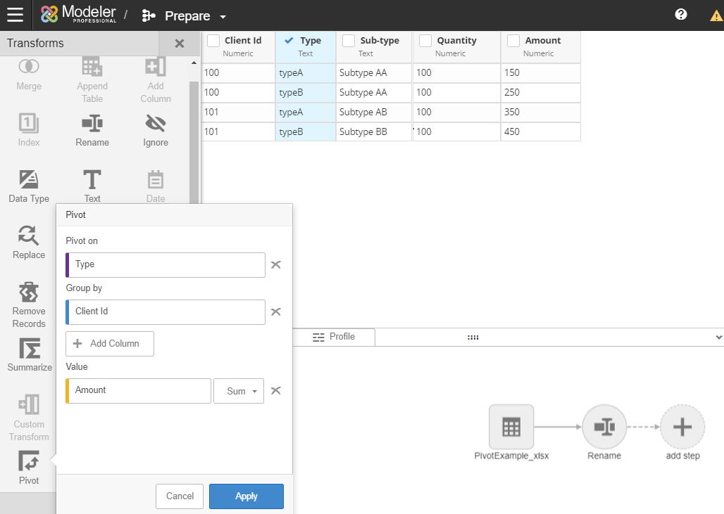 Applying Pivot transformations