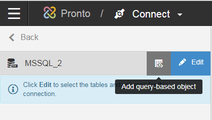 You must provide a unique Query Object name and valid SQL syntax that is compliant with the connected database. Click to create the query object.