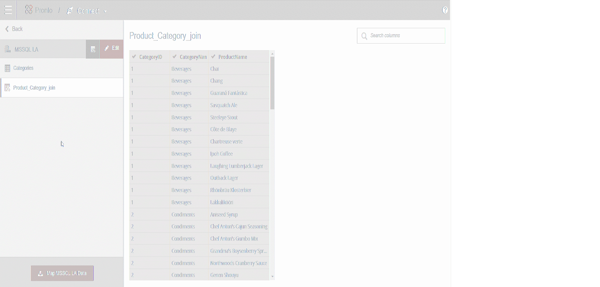 Here is the valid SQL syntax used to create the simple join with the Products and Categories table in MSSQL for the above example.