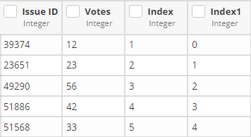 The Index transformation sets up a new column with numbered rows. You can set the starting number of the index. If you create more than one index column, the column name is appended with a number.