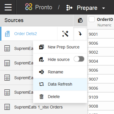 You can set up prepared sources for incremental refresh. Raw sources are always setup for full refresh while prepared sources can be set to full refresh (default) or incremental refresh. You can now set up prepared sources (based on one or more columns) for incremental refreshes. You have the option to (Keep Original) or (Replace Original) for any matching values in existing rows in the prepared source.