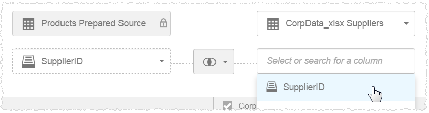 In this example, both tables used the same SupplierID keys, so you select them from the list.
