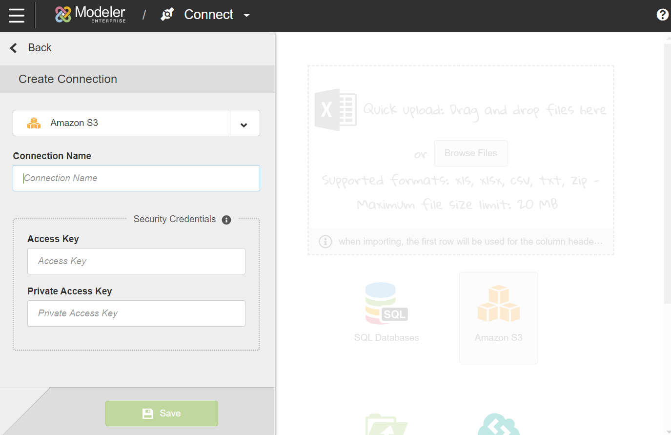 Creating the Amazon S3 connection