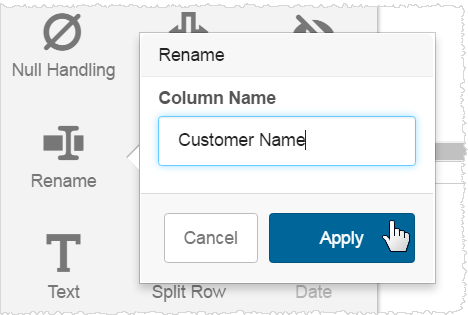 The preview for that column turns green to indicate that a transformation has been applied to it, and the step displays in the pipeline.