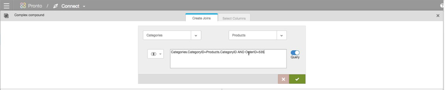 The edits can be at the columnar level where in the following example we de-selected the CategoryID column from the Categories parent table and selected the CategeoryID column from the Products child table.
