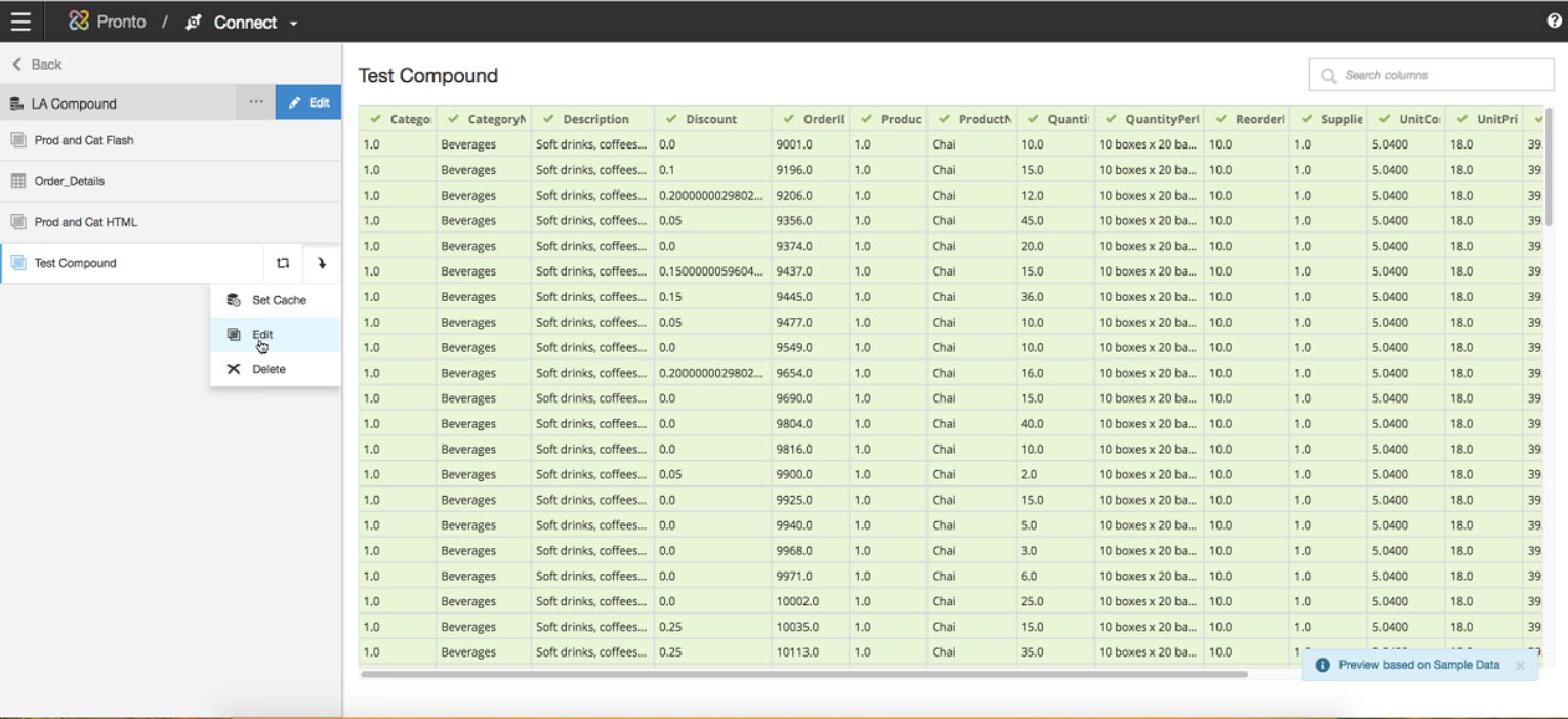 The Modeler Connect options includes a Create/Edit Compound Table option.