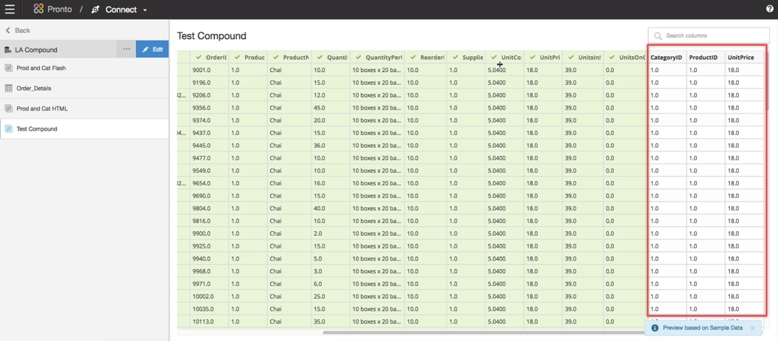 Then assemble your Compound table in a similar fashion as the merge transformation.