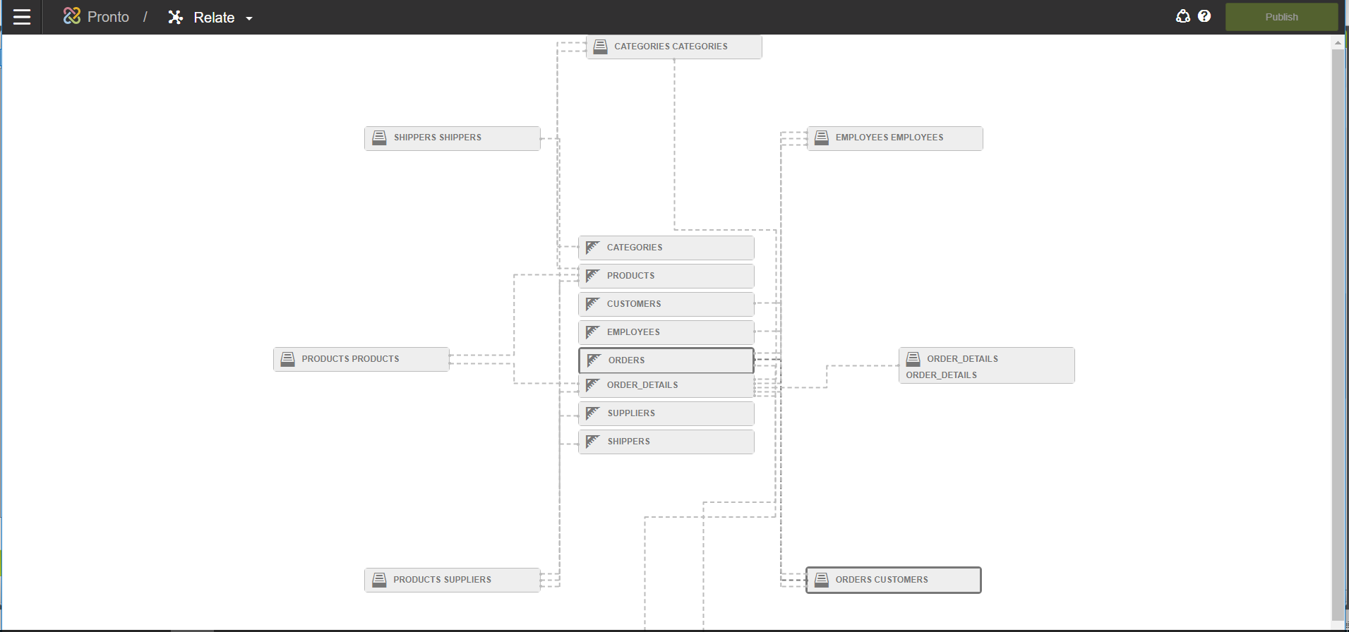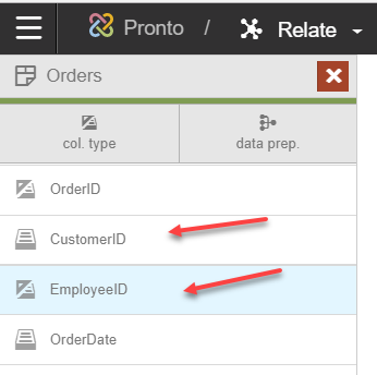 Also notice when looking at the Orders table in Modeler Relate source view that CustomerID and EmployeeID are foreign keys on the Orders table which also helps us understand the graining relationship.