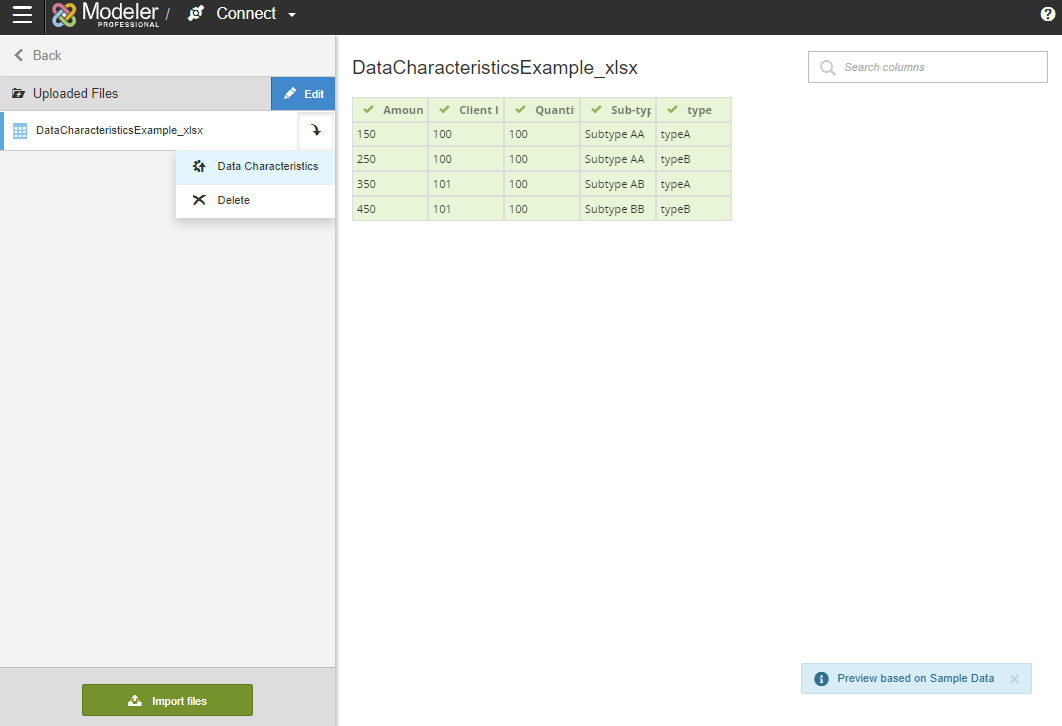 - Click the Actions icon of the connector, then click Data Characteristics.
