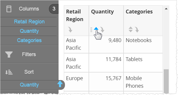 Chart Builder adds the column to the Sort section, with an up arrow.