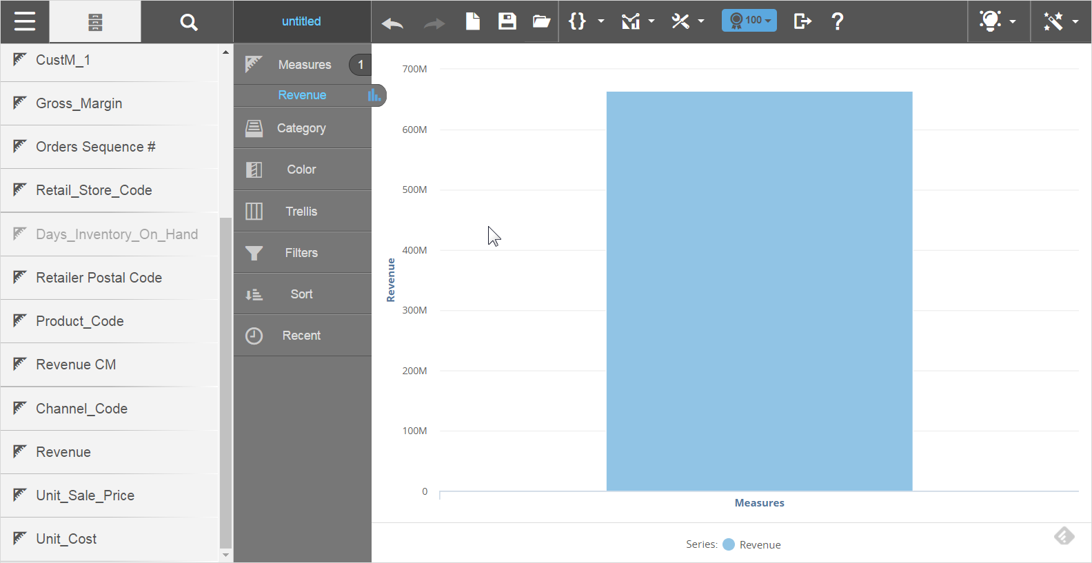 - To delete a measure or attribute, drag the name of the measure or attribute from the Chart Builder to the Subject Area and drop it on the Trash.