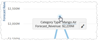 A measure's Data Formatting applies across the visual elements that use the measure. For example, unit, decimal precision, and currency symbol settings apply to both Y axis labels and tooltips.